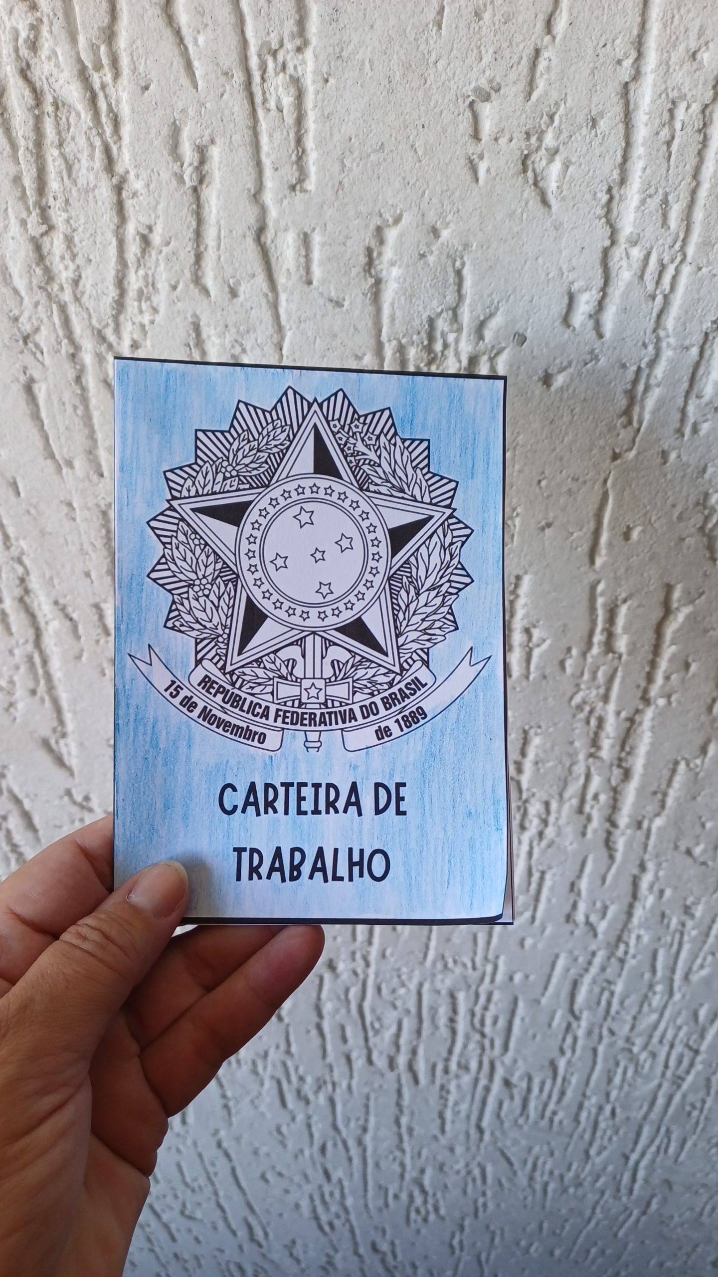 É uma atividade divertida para a criança brincar de ter a sua própria carteira de trabalho.
